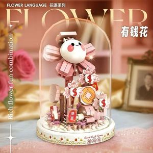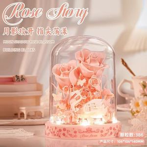 永生花积木兼容乐高玫瑰樱花树拼装玩具手工diy盆栽摆件女生礼物