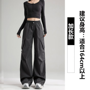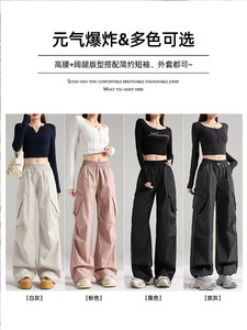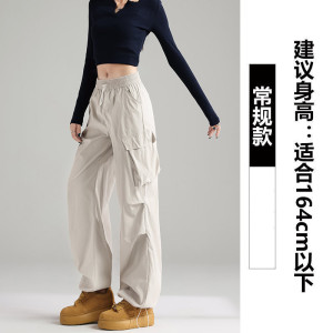 美式白灰色工装裤女2025早秋款复古直筒阔腿裤户外速干登山运动裤