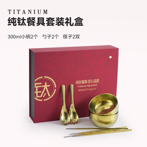 新款纯钛小碗成人辅食双层饭碗隔热防摔食品级家用碗餐具礼盒批发