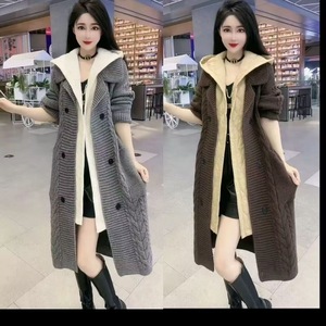 长款过膝拼接棉服针织开衫2025秋冬新款连帽宽松设计感毛衣外套女