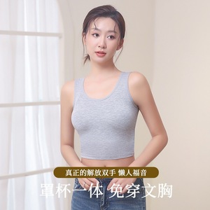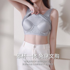 新款背心女打底一体胸垫内衣宽肩宽松免穿背心大码文胸一体式加大