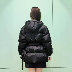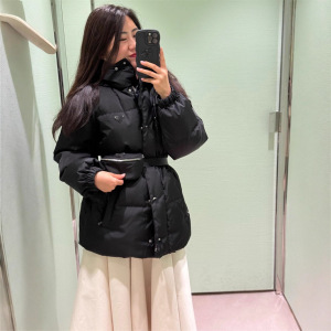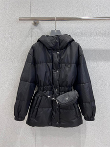 2025秋季新款南油pra简约百搭款拼接腰包单排扣连帽羽绒服外套女