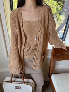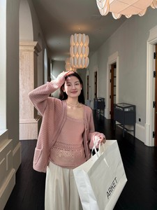 DIGM | 2025秋季韩系甜美简约V领镂空针织衫开衫羊毛毛衣女A3M019