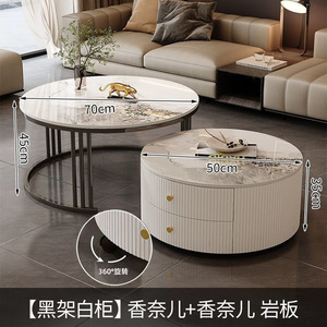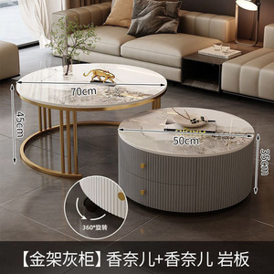 奶油意式岩板伸缩茶几轻奢现代组合简约客厅家用小户型圆形桌子