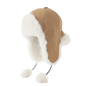 英伦风纯色加绒毛边雷锋帽秋冬复古百搭毛球护耳帽户外防风保暖帽