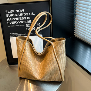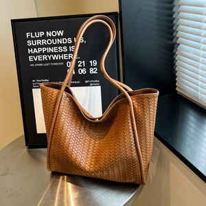 高级感复古编织纹包包2025新款时尚女式通勤单肩包外出上班托特包