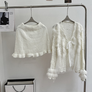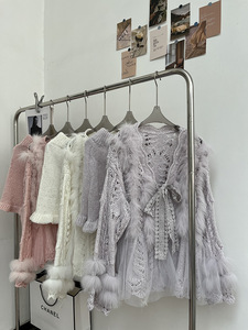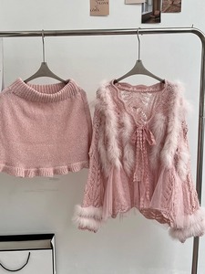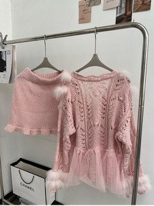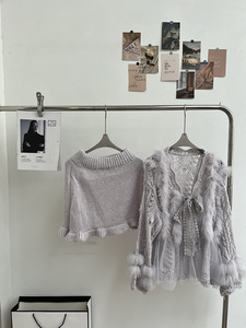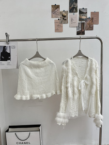 糯糯柔云秋冬新款名媛温柔气质网纱拼接狐狸毛百搭针织衫时尚短裙