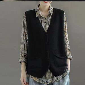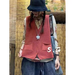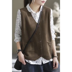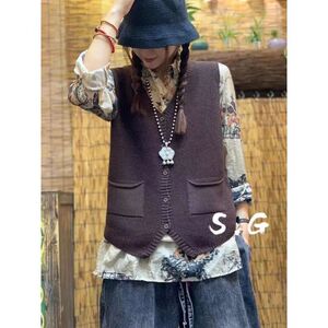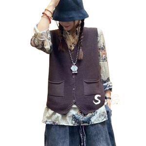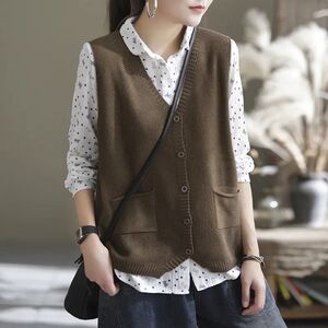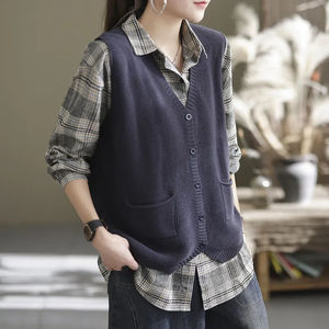 新款针织马甲女春秋季V领休闲百搭宽松复古纯色大码坎肩马夹背心
