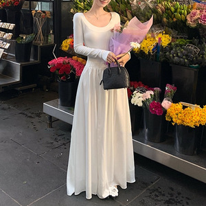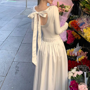 2025新款'白月光契约'白色连衣裙女秋季长袖打底裙高级感法式长裙