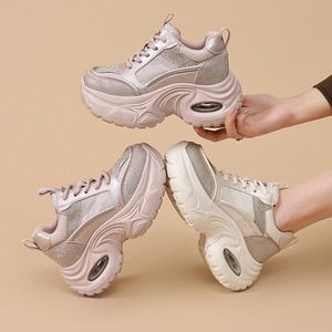 欧洲站厚底老爹鞋女2025秋季新款时尚擦色透气网面增高运动休闲鞋