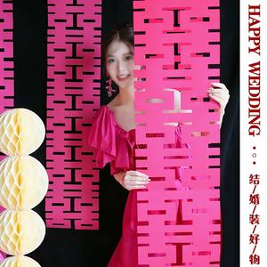 无纺布长条六连喜字结婚婚房布置囍字装饰床头阳台大门卧室墙贴喜