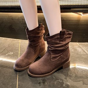 增高5cm马丁靴女秋冬款中筒小个子显瘦堆堆褶皱百搭复古女靴短靴