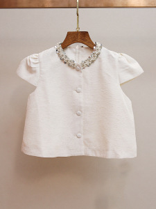 深圳南油高端女装秋季新款千金风镶钻上衣+A字百褶短裤肌理感套装