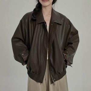 HAVERICE饭馆新款经典入门款 甜酷女孩秋日简约垂软夹克皮衣外套