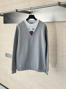 正确版 LO家25ss早秋新款V领假两件卫衣高定版男女百搭韩系长袖