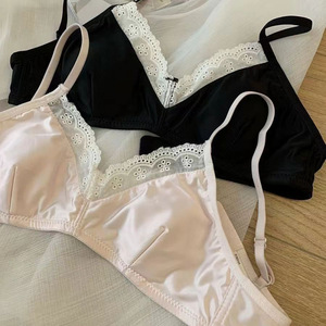 法式三角杯蕾丝边兔耳杯内衣女无钢圈收副乳防下垂舒适薄款文胸罩