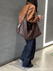 慵懒松弛感托特包包女高级感大容量通勤包休闲软皮单肩斜挎包大包