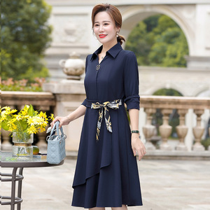 妈妈秋季连衣裙显瘦新款中年女装洋气大码裙子中老年时尚百塔裙子