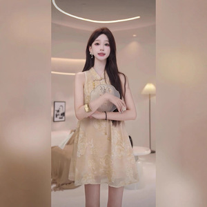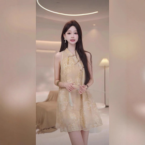 TZ6775新中式国风改良旗袍女高级感御姐气质轻奢盘扣提花连衣短裙