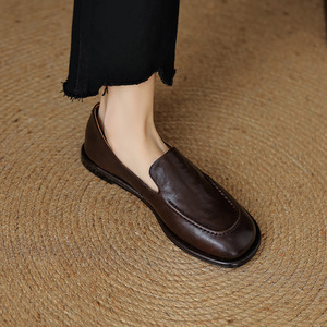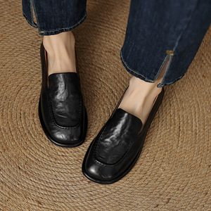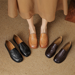 真皮复古平底单鞋女款2025新款春秋女鞋软底乐福鞋老钱风小皮鞋女