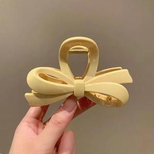 奶油黄交叉蝴蝶结抓夹2025新款百搭少女领结鲨鱼夹后脑勺盘发发夹