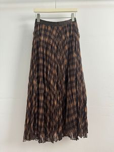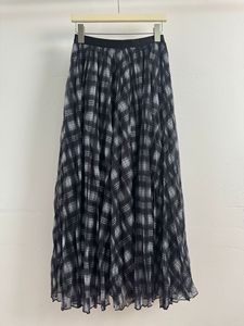 秋冬季格纹拼接大摆网纱半身裙经典百搭高腰显瘦A字长款裙子女