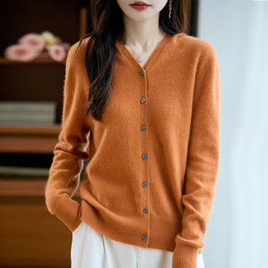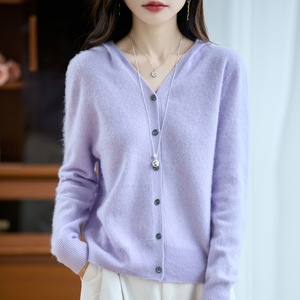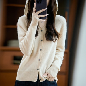 亲肤感100%羊毛一线成衣帽衫针织毛衣外套软糯上衣针织开衫女现货