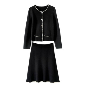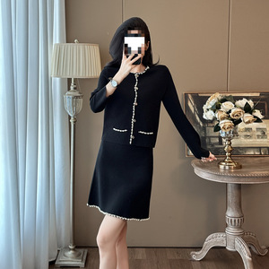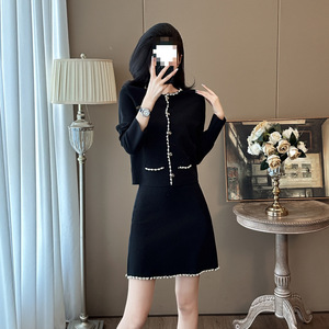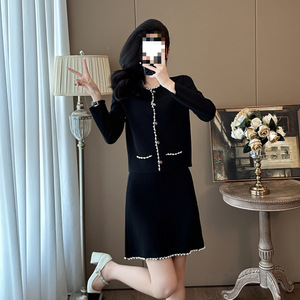 法式气质时尚套装女春秋2025新款小香风高级感黑色上衣短裙两件套