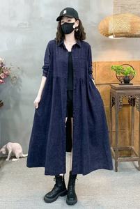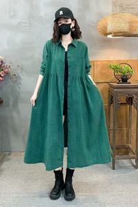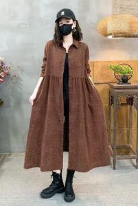 复古文艺炒色棉麻女士风衣外套秋季新款长款气质宽松连开衫连衣裙