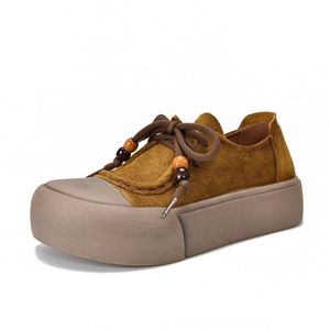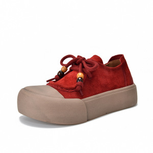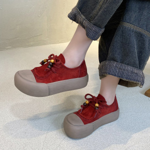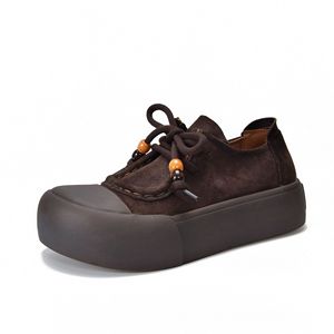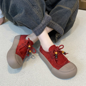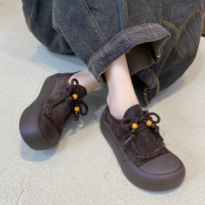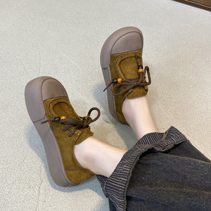 【推荐】头层牛皮平底休闲鞋包头女鞋串珠复古低帮鞋2025秋季新款
