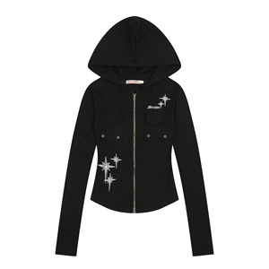 美式复古条纹连帽长袖T恤女2025秋季星星印花修身显瘦短款外套潮