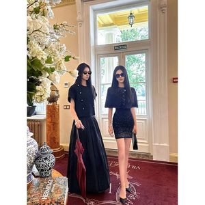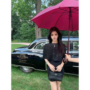 2025早秋轻奢气质千金感斗篷披肩设计新款针织外套连衣裙两件套女