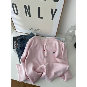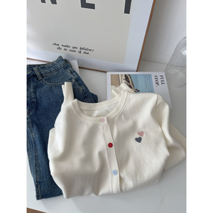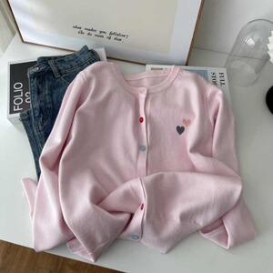 多巴胺学院风甜美刺绣针织开衫女秋冬新款软糯彩扣宽松百搭外套