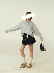 2025秋季新款手工亮钻GAO级慵懒百搭套头时髦短款宽松休闲卫衣女