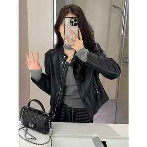 韩版高级感立领小皮衣外套女2025秋季新款小个子时尚百搭短款上衣