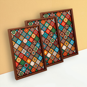 跨境波西米亚风托盘异域客厅桌面收纳首饰玄关家用木质皮革收纳盘