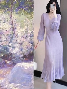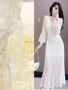 南油高品质名媛风设计感羊毛针织V领长袖鱼尾修身连衣裙原创女装