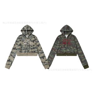 韩国小众潮牌aeae短款卫衣女辣妹修身显瘦百搭长袖迷彩外套秋冬款