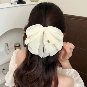 公主黑色超仙气质蝴蝶结马尾夹头饰后脑勺飘带发夹发饰半扎发抓夹