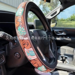 跨境新款时尚方向盘套,精致裁缝印花工艺安装方便时尚大气