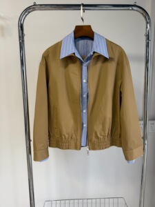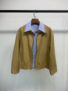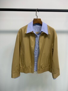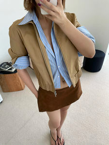 假两件撞色条纹拼接翻领夹克潮短夹克衬衫领长袖外套女