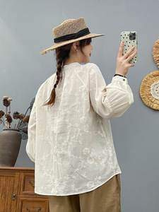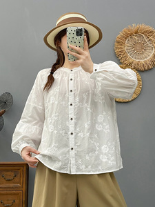 86312甜美立领绣花长袖衬衫 女2025秋装新款休闲显瘦上衣