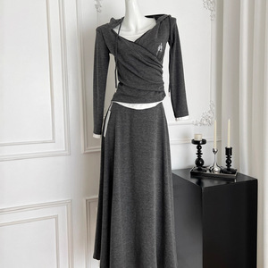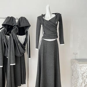 Q3805假两件卫衣针织衫女上衣套装韩系通勤显瘦新款修身卫衣秋季