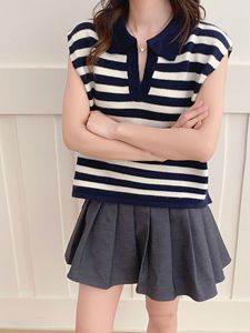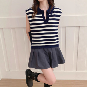 法式撞色条纹外搭针织衫女装2025秋季新款气质v领叠穿马甲背心