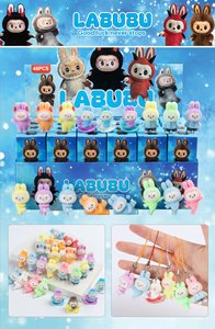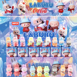 新款48入labubu盲盒小礼品拉布布植绒可爱卡通公仔打孔丁挂绳潮玩