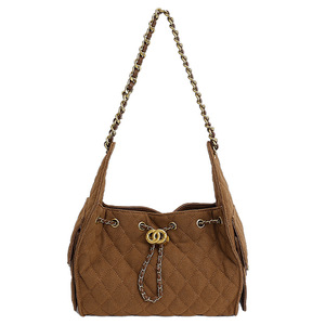 感菱格链条包包女2025新款潮百搭单肩斜挎包大容量抽绳水桶包