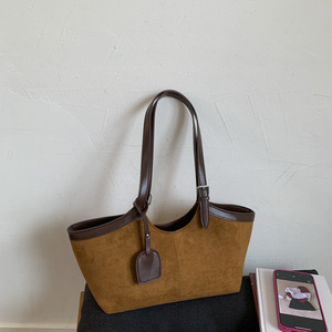 简约休闲绒面托特包女2025秋季新款高级感洋气单肩腋下轻奢手提包