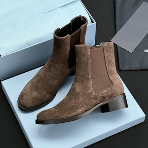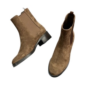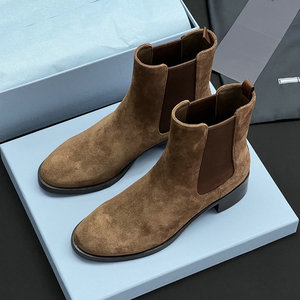 供代入柜版!复古简单圆头中跟切尔西短鞋弹力套筒一脚蹬时装靴女