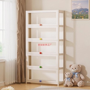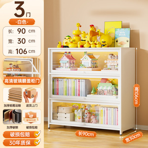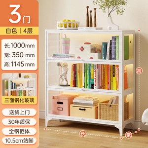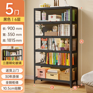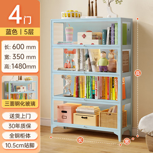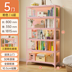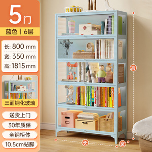 钢制书柜玻璃手办展示柜防尘储物柜多巴胺儿童书架多层落地收纳柜