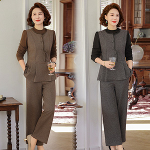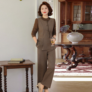 妈妈春秋装小香风款休闲套装2025新款中年妈妈款上衣时尚洋气套装